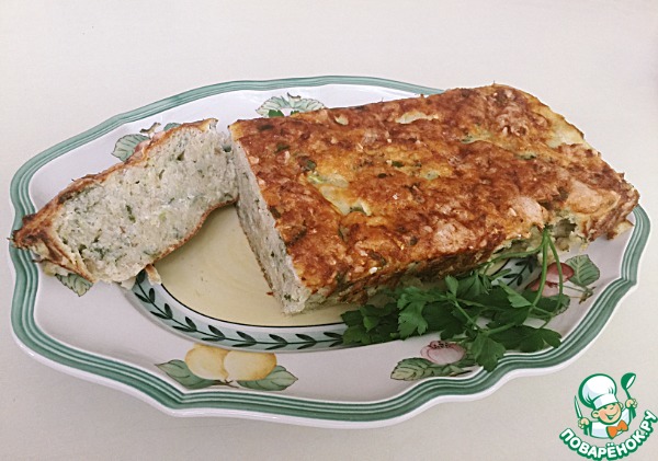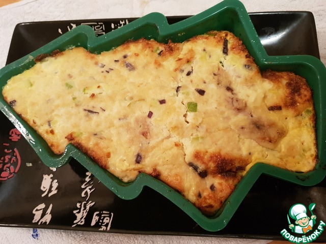 Все остальные ингредиенты смешать и затем перемешать с рыбой, луком и цуккини. -