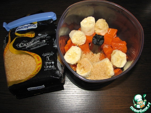 Остывшую тыкву взбить в блендере вместе с бананом, соком из половины лайма и сахаром. Я использовала тростниковый сахар Демерара от ТМ Мистраль.