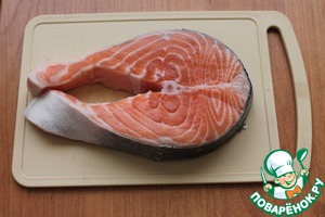 Рыбу моем, чистим. У меня вот такой стейк семги.