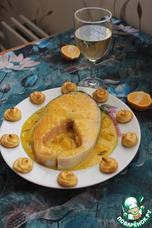 Изюминка этого блюда - в необычном гарнире, который изысканно смотрится на праздничном столе. Такая рыба подойдет для романтического ужина или другого особого случая. Подается с оригинальным мандариновым соусом, вкус которого хорошо подчеркивает сливочное масло "Экомилк".