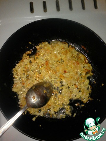 Лук также мелко порезать и спассеровать на растительном масле. Если вы любите, чтобы лучок похрустывал, то можете не пассеровать, а добавить прямо сырым. Я луку добавляю 1 ст. л муки. Так он быстрее зарумянивается. А остальные 2 СТ. л. добавляю уже к филе