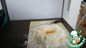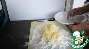 Быстро натираю холодное сливочное масло на терке, обсыпая масло в муке.