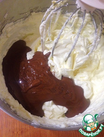 Добавляем растопленный шоколад, перемешиваем.