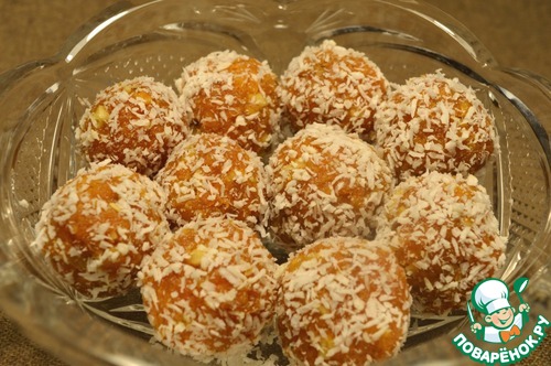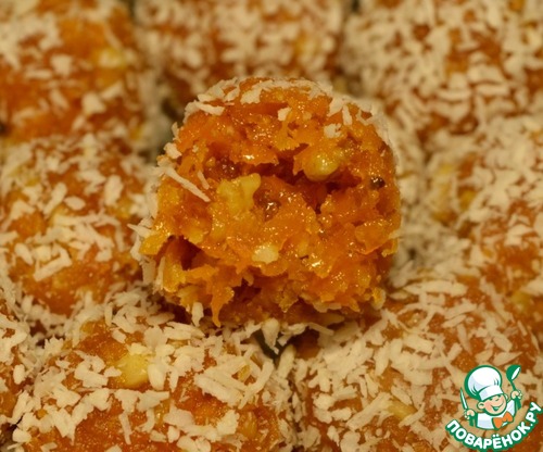 Обваливаем шарики а кокосовой стружке и получаем вот такие красивые конфетки. Форму и размер можете выбрать сами на свой вкус. Конфеты получились влажными, сладкими и необычными. Морковью совсем не пахнет. Если бы мне дали такую конфету, не говоря, из чего она сделана, я бы не поняла, что из моркови. Попробуйте, это интересно!