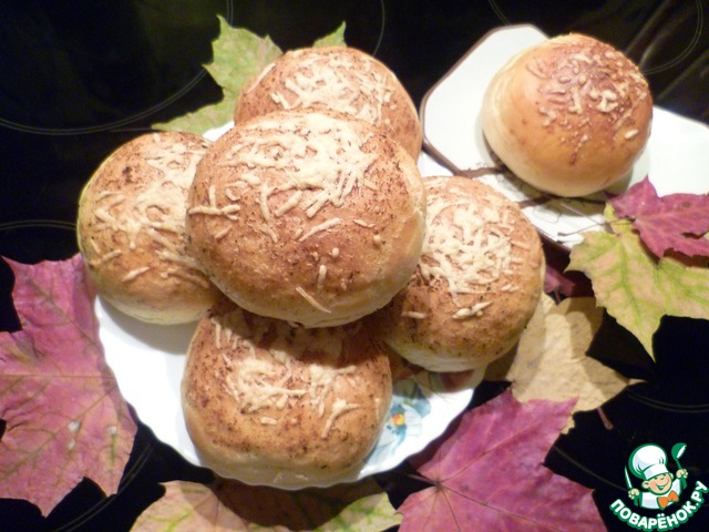 Смазать булочки полученной маслом с помощью кисточки. Посыпать сыром пармезан и дать подняться в течение 15-20 минут.