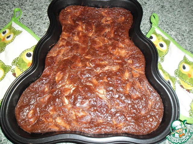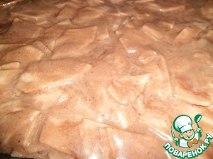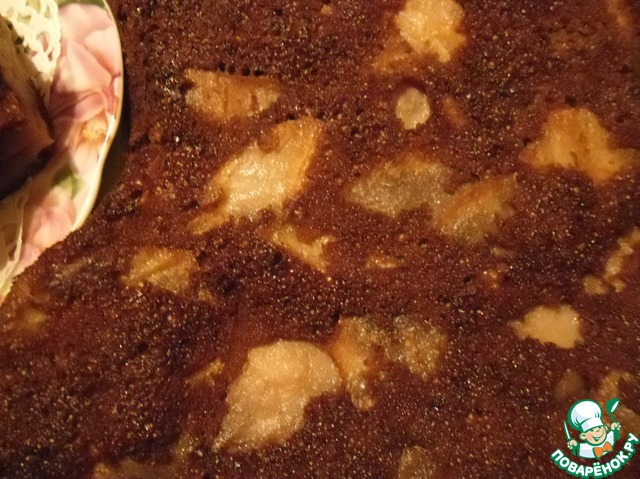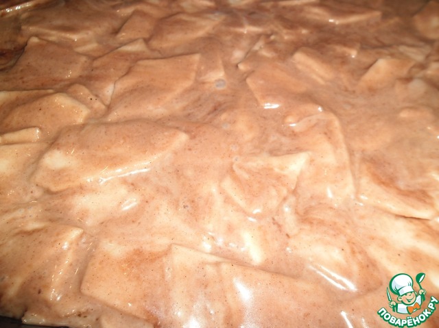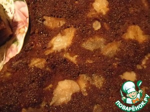 На фоне шоколадного теста вот такие янтарные кусочки яблок, аромат стоит сногсшибательный.