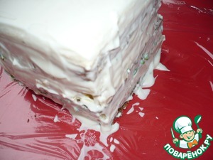 Верх и бока торта смазать майонезом.
