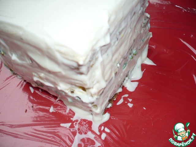 Перед подачей разрезать торт пополам.