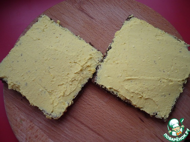 1 слой - черный хлеб с яичным желтком;