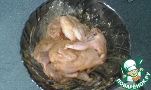 Тщательно вмешиваем весь набор в птицу и отправляем в холодильник часа на 4. Как всегда чем дольше продукт стоит в маринаде, тем лучше. Соевый соус способствует размягчению мяса, а дичи тем более.
