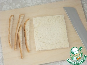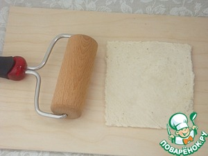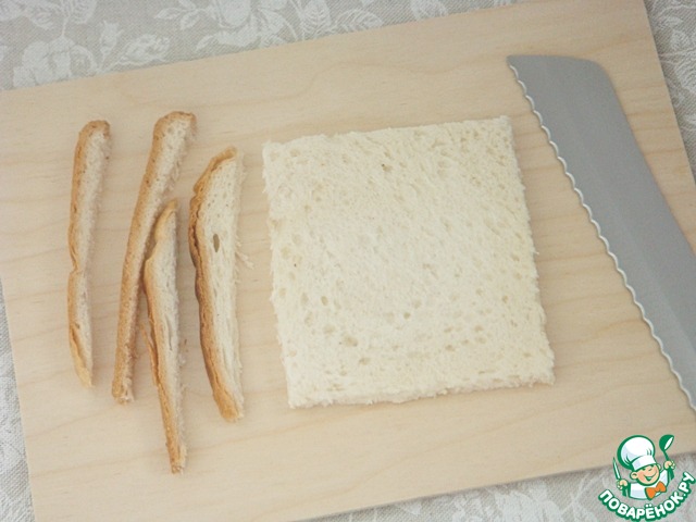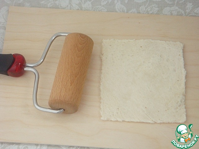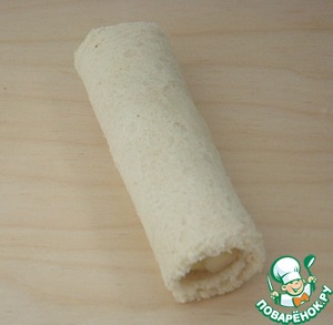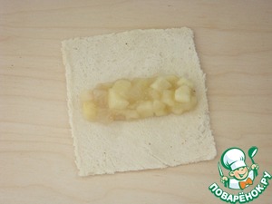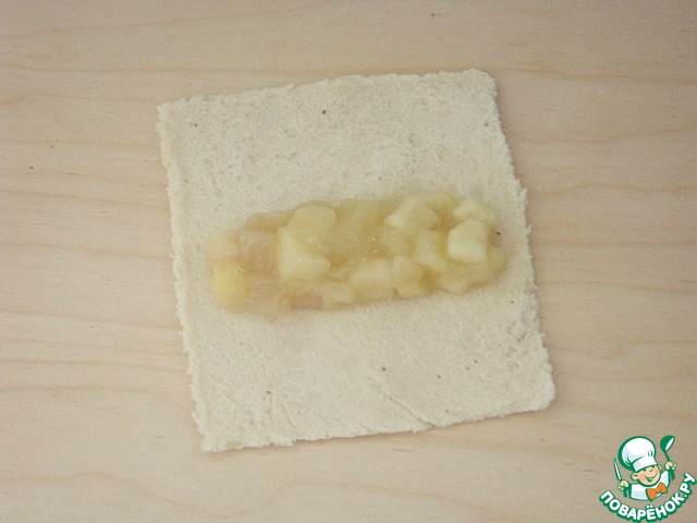 На середину каждого раскатанного ломтика хлеба выложить по 1 ст. л. яблочной начинки.