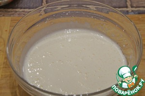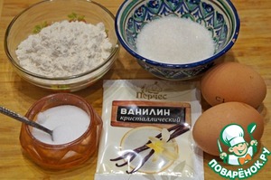 • Духовку включить на 180*С. Яйца взбить с сахаром до тех пор пока масса не увеличится в 2 раза.
