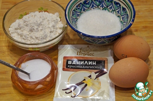 • Для начала займемся бисквитом. Для него нам потребуются вот такие продукты.