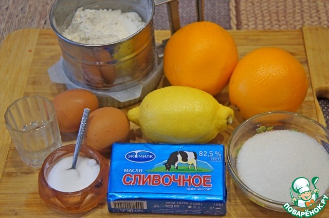 • Растереть масло с сахаром, добавить яйца и цедру апельсина и лимона, перемешать.