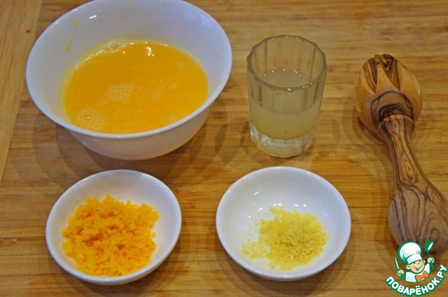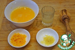 • Желтки взбить с сахаром, добавить сок и цедру.