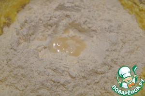 • Затем просеять на масляную смесь муку и в последнюю очередь добавить ледяную воду.