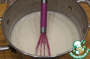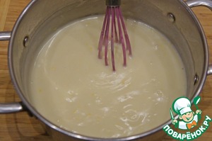 • Влить вскипевшее молоко в яичную массу и быстро перемешать.