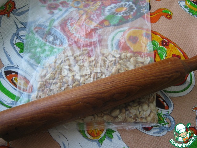 • Орехи ( у меня арахис) обжарить, очистить от шелухи и измельчить на небольшие кусочки.