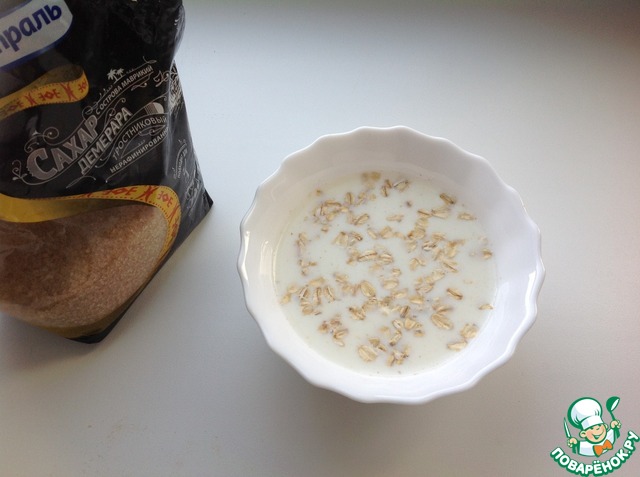 Овсяные хлопья смешать с молоком и дать постоять 5-10 мнут.