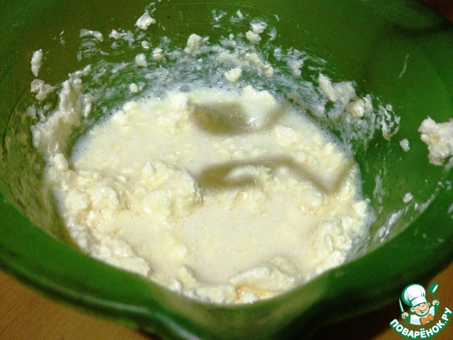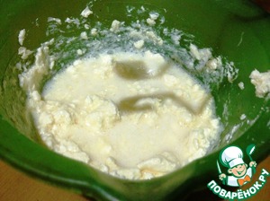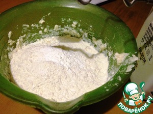 Добавить просеянную с разрыхлителем муку. Перемешать.