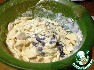 Добавить тёмный и белый шоколад, порубленный на маленькие кусочки. Перемешать.