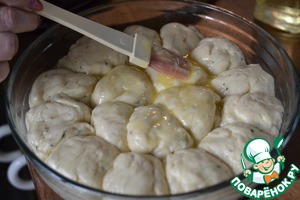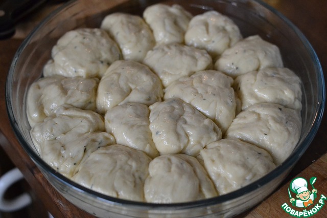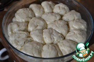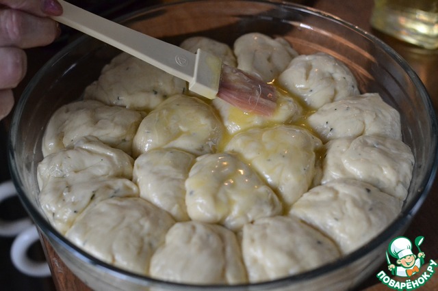Выкладываем в смазанную маслом форму. Стараемся укладывать булочки очень близко! Прикрыть.