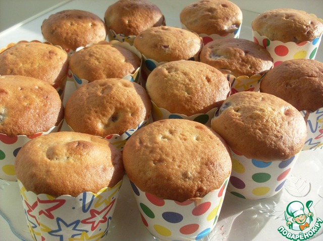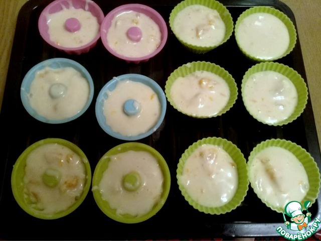 Наполняем формочки тестом, оставляем место в формочках для подъема кексов, так как тесто хорошо поднимается. Выпекать в хорошо разогретой духовке 200* 20-25мин.