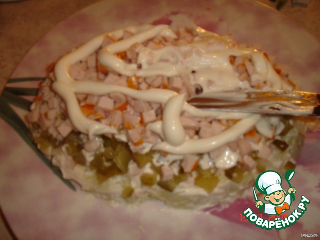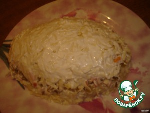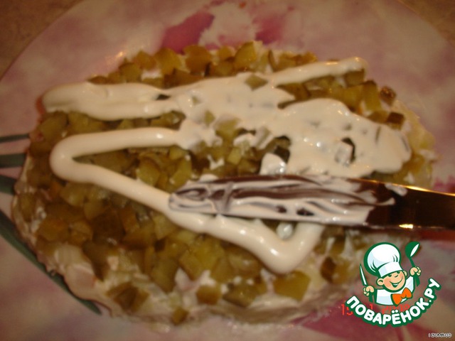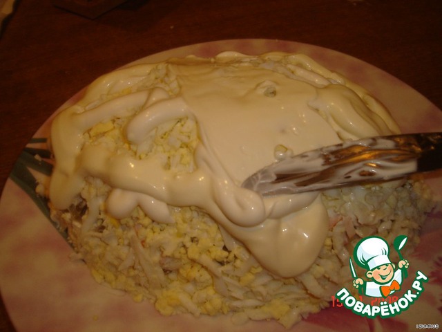 Салат выкладываем слоями на блюдо в следующей последовательности: