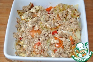 Овощи не жарила на сковородке, а запекла 15минут в духовке, уже после посыпала хлебом и стала запекать дальше.