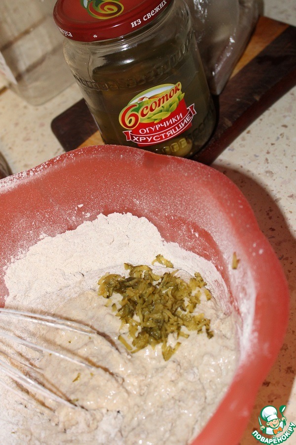 Затем добавить маринованный огурец, натертый на мелкой терке.