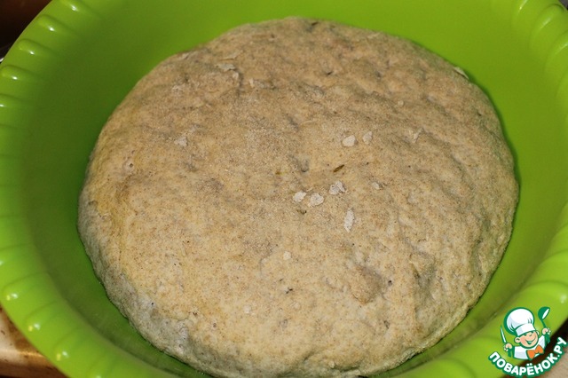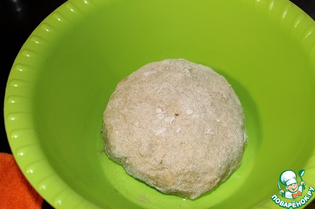 В конце добавить просеянную ржаную муку и замесить тесто. Тесто скатать в шар и переложить в чистую миску. Накрыть полотенцем и оставить в теплом месте на 2 часа.