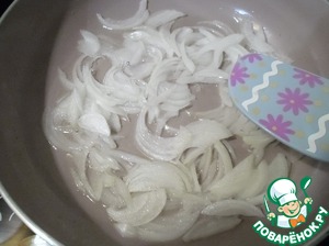 Нарезать тонкой соломкой репчатый лук, пассируем на растительном масле.
