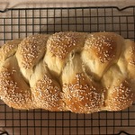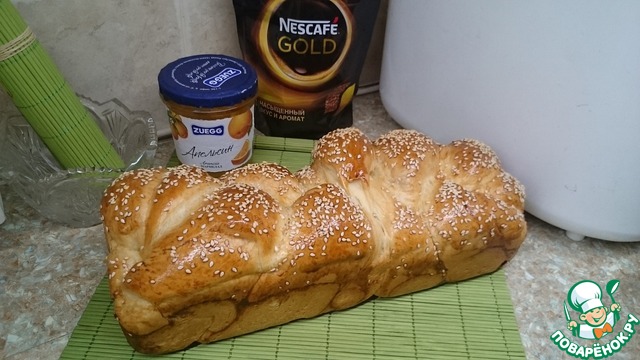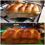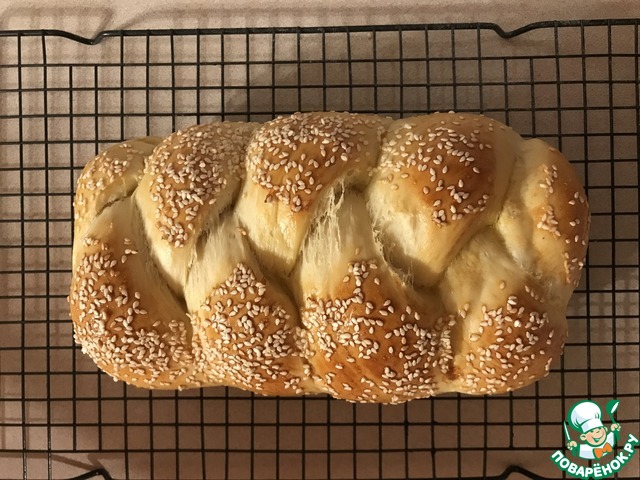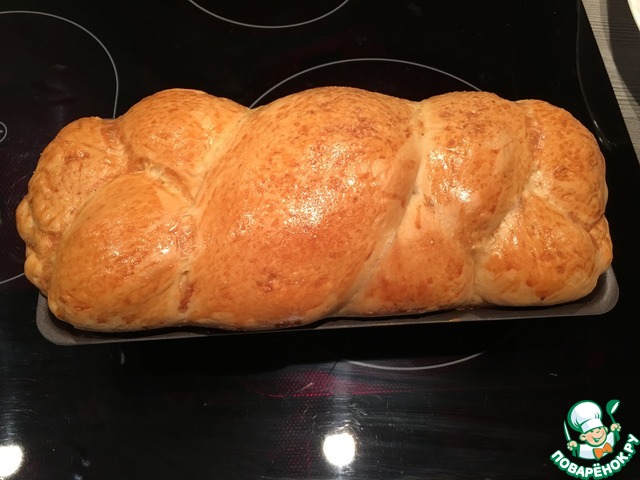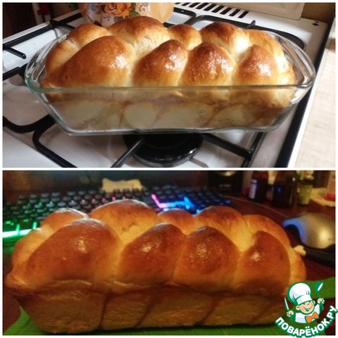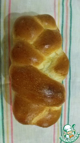 Рецепт рассчитан на одну халу весом 650 гр. (в сыром виде). Вес готового изделия 570 гр. Форма 23*13 см. (я выпекала в стеклянной форме 24*11 см., высота 7 см.).