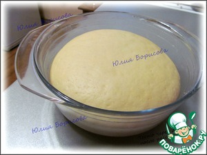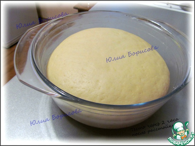Дать тесту выбродить часа 2, или пока тесто не увеличится вдвое.