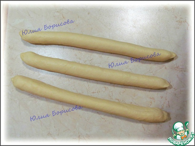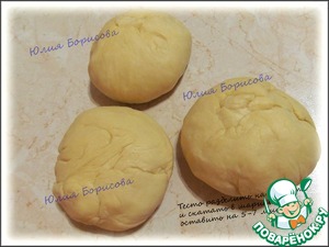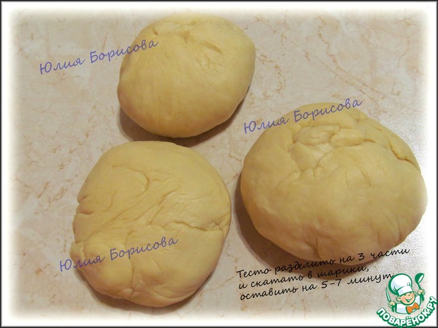 Разделить тесто на три равных части, скатать в шары и дать полежать минут 5-7.