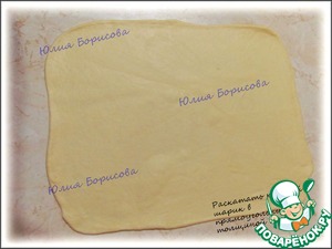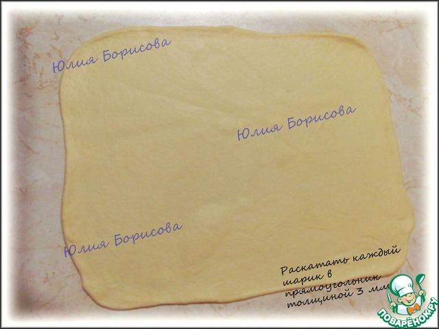 Каждый шар раскатать скалкой в лепёшку 3 мм. толщиной.