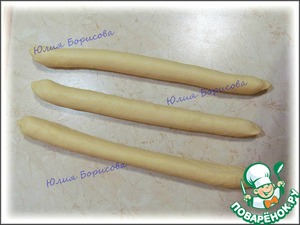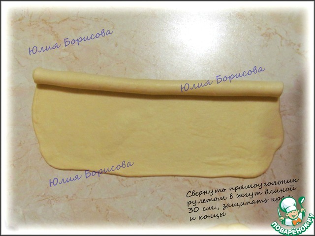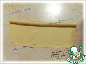 Свернуть в рулет, защипать и раскатать в жгут длинной в 30 см.