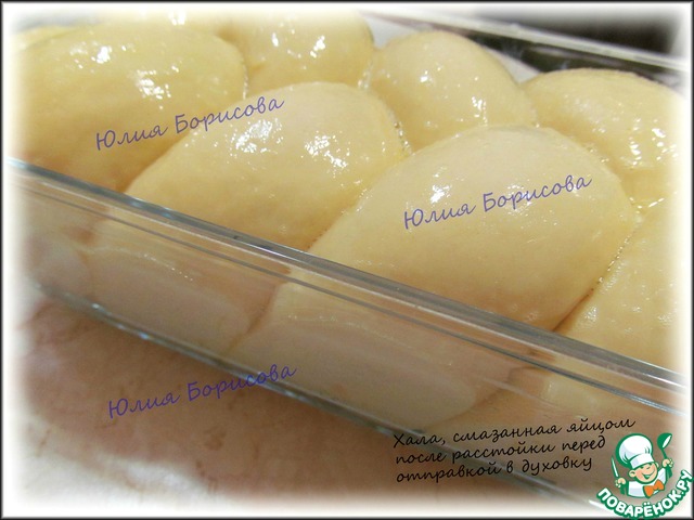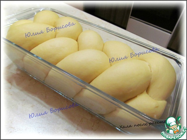 Хала должна примерно утроиться в размерах во время расстойки, на это уходит часа 1,5 (чуть больше, чуть меньше).