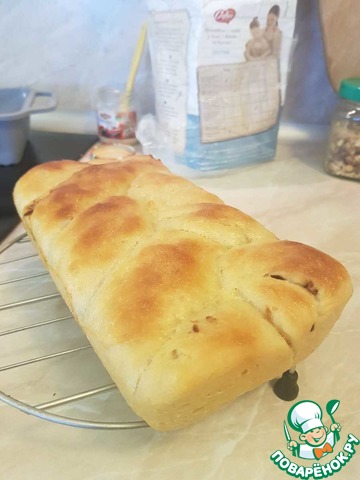 Хлебопечка все смешала, выпекала отдельно в ней 20 минут. Вышел безумно вкусный, мягкий хлеб. Ещё я добавляла изюм крупный жёлтый, промыв в кипятке и смешав его с мукой предварительно.