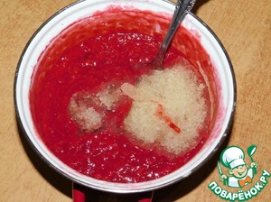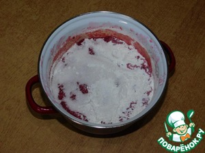 В горячую малину добавляем желатин и перемешиваем до полного его растворения