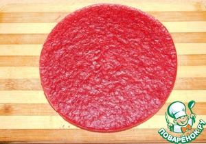 Вот так выглядит наш замороженный слой малиновой начинки. -