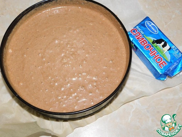 Готовое тесто выливаем в форму для выпечки (D=22 см).