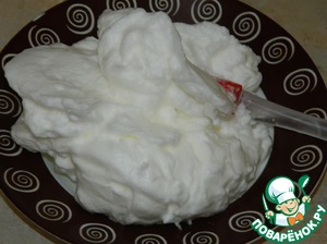 Для приготовления бисквита взбиваем белки с 75г сахара. Отставляем в сторону.