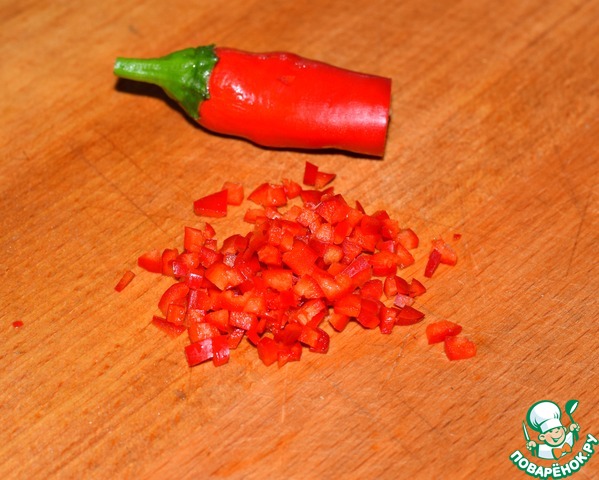 Пока яблоки готовятся, мелко нарезать половинку перчика чили. ( 9-10 г примерно)