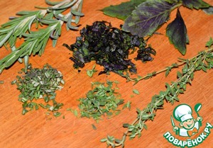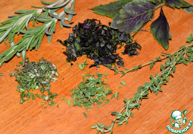 Измельчить пряные травы. Количество трав указано факультативно, ориентируйтесь на свои вкусовые предпочтения. Например, иногда я кладу больше розмарина...