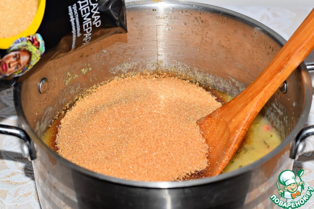 Всыпать сахар (я использую сахар Демерара ТМ Мистраль), перемешать и варить 25-30 минут до загустения. Не забывать помешивать.