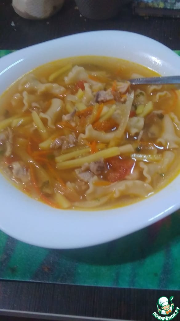 В юности я жила в Средней Азии, и знакомая уйгурка часто готовила суп с редькой и, типа, галушками. Очень он мне нравится, может и вам кому-то понравится. Правда, сейчас такое изобилие макаронных изделий в магазинах, что я перестала делать "типагалушки". Угощайтесь!