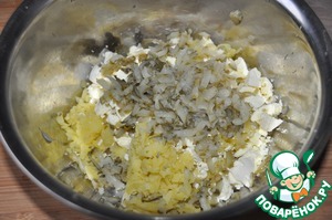 Картофель в мундире и яйца отвариваем заранее, чистим.