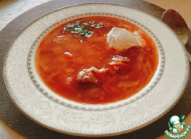 Подавайте свекольник горячим со сметаной. Приятного аппетита!