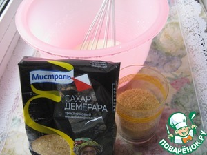 Начинаем готовить пряничное тесто. Яйцо хорошо вымыть и отделить желток от белка, только аккуратно, чтобы желток не попал в белок. Белок нам потребуется для глазури. В молоко добавляем желток, сахар, мёд, тщательно размешиваем венчиком. Для придания карамельного вкуса тесту я буду использовать коричневый сахар Демерара ТМ "Мистраль". Делаю полпорции теста.